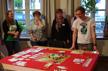 Die vier europäischen Masterstudierenden Alexandra Ioan, Philip Kovce, Bianca Rancea und Björn Verse entwickelten im Rahmen ihres Jahresprojekts des Studienkolleg zu Berlin eine eigene Spielversion. Ihre Spielversion ‚Grenzgänger' qualifiziert für transnationale Bürgerbeteiligung bei grenzüberschreitenden Infrastrukturvorhaben. Grenzgänger eröffnet damit eine gewinnbringende Diskussion von Planungsvarianten und die Entwicklung eines gemeinsamen Leitbilds in einer Grenzregion. Ein Jahr lang recherchierten die vier Masterstudierenden zu grenzüberschreitender Bürgerbeteiligung in Europa. Sie sprachen vor Ort in europäischen Grenzregionen mit Experten, Planern, Politikern, Unternehmern und betroffenen Bürgern, die in die umstrittene deutsch-dänische Feste Fehmarnbelt-Querung und die Lyon-Turin-Hochgeschwindigkeitstrasse sowie den Schweizer Gotthard-Basistunnel eingebunden sind.