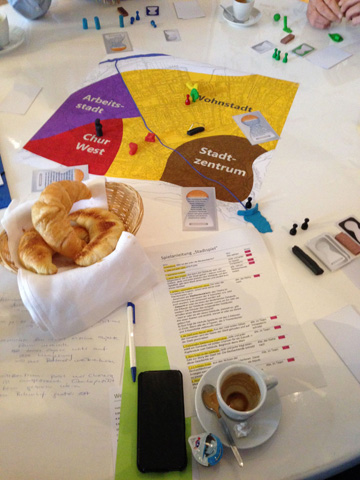 Eine Stadt zu planen, Quartiere zu entwickeln, sind sehr komplexe Aufgaben, gerade dann, wenn bestehende Perimeter, Strassen und vieles mehr klare Grenzen setzen. Immer wichtiger wird dabei der Dialog unter den Betroffenen, seien es Investoren / Bauherren, Bewohner oder Planerinnen. Weil es ja bei der Stadtentwicklung nicht nur um bauliche und planerische Fragen unter Fachleuten geht, sondern um viele verschiedene Sichtweisen und Interessen. "Stadtspieler" – unsere Anpassung an die räumlichen Umstände und den Zusammenhang von Chur – hilft dabei, die verschiedenen Perspektiven zu verbinden und Stadtentwicklung auch als Prozess, als vielschichtigen Prozess zu verstehen. Wir haben dabei erfolgreich mit Szenarien gearbeitet, die ganz konkret mit der Stadtentwicklung vor Ort zu tun haben.