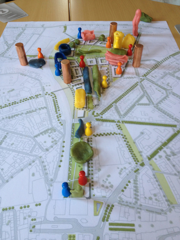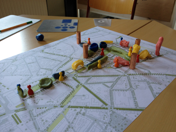 Beispiele von Spielversionen „Stadtspieler“, wie sie 2012 im Unterricht von Torsten Renneberg, Hamburg, Büro Tektour, entwickelt wurden. (Entwicklung eines B-Planes / Konzept für „Mitte Altona“)